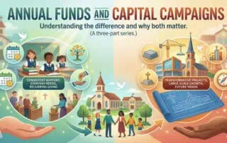 Annual Funds and Capital Campaigns Is your school or parish ready for a Capital Campaign? Part Two in a Three Part Series We're exploring the two development efforts that matter most: the Annual Fund and the Capital Campaign. Both are essential. Both invite generosity. But they serve different purposes, operate by different rules, and require different things from your leadership. Last week, we discussed the Annual Fund — what it is, what it funds, and why Catholic communities can't afford to neglect it. This week, we'll turn to the Capital Campaign and what it...